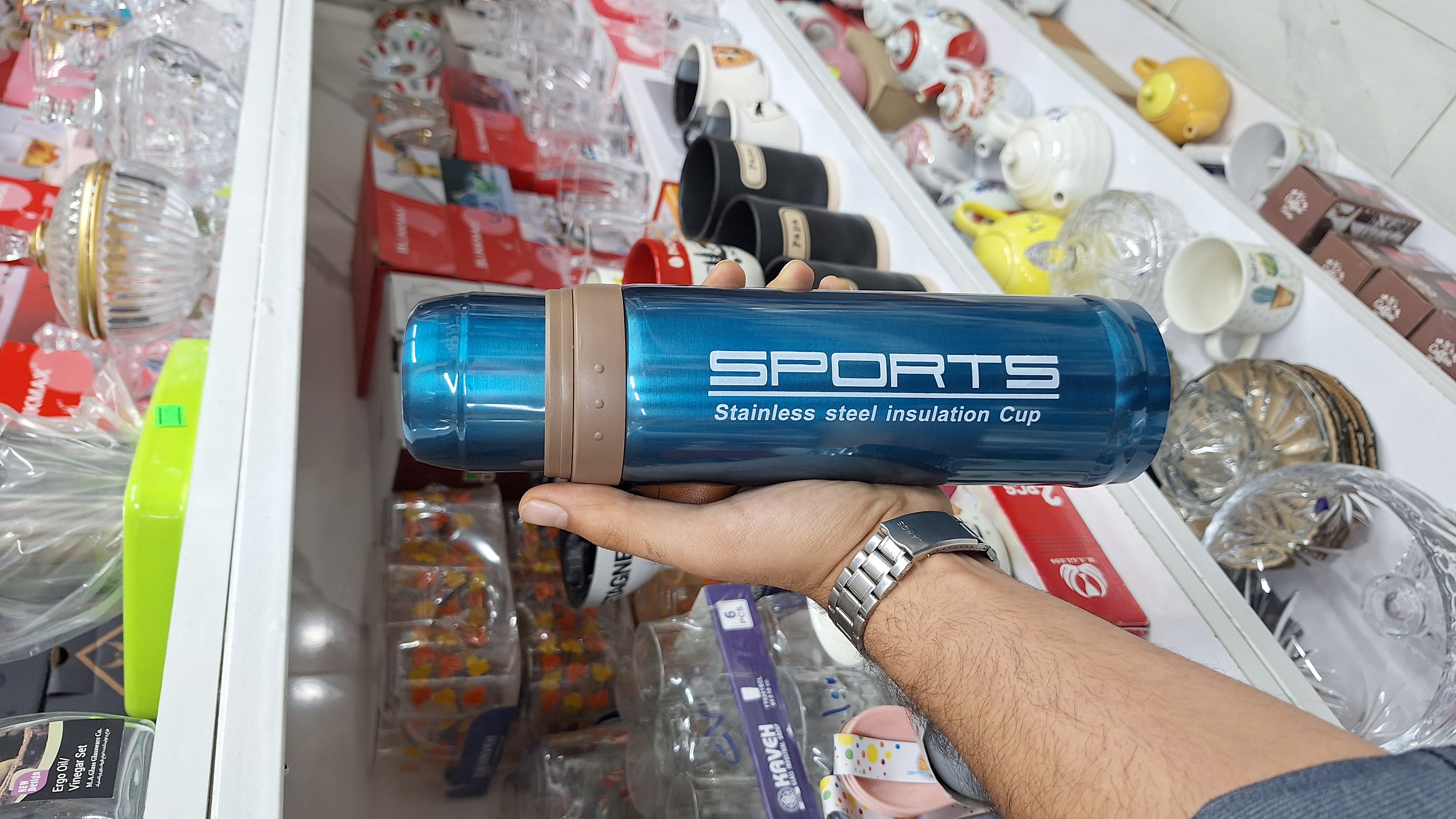 ظرفیت 750 میل جنس بدنه تمام استیل دارای لیوان مناسب چای _نسکافه و قهوه _ آب گرم یا سرد نگه داشتن آب به مدت طولانی